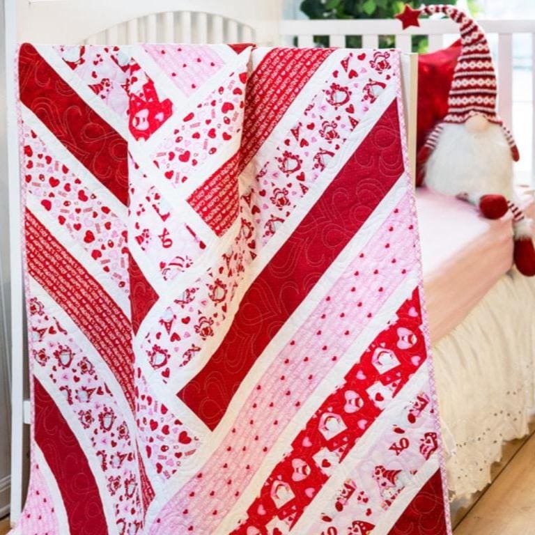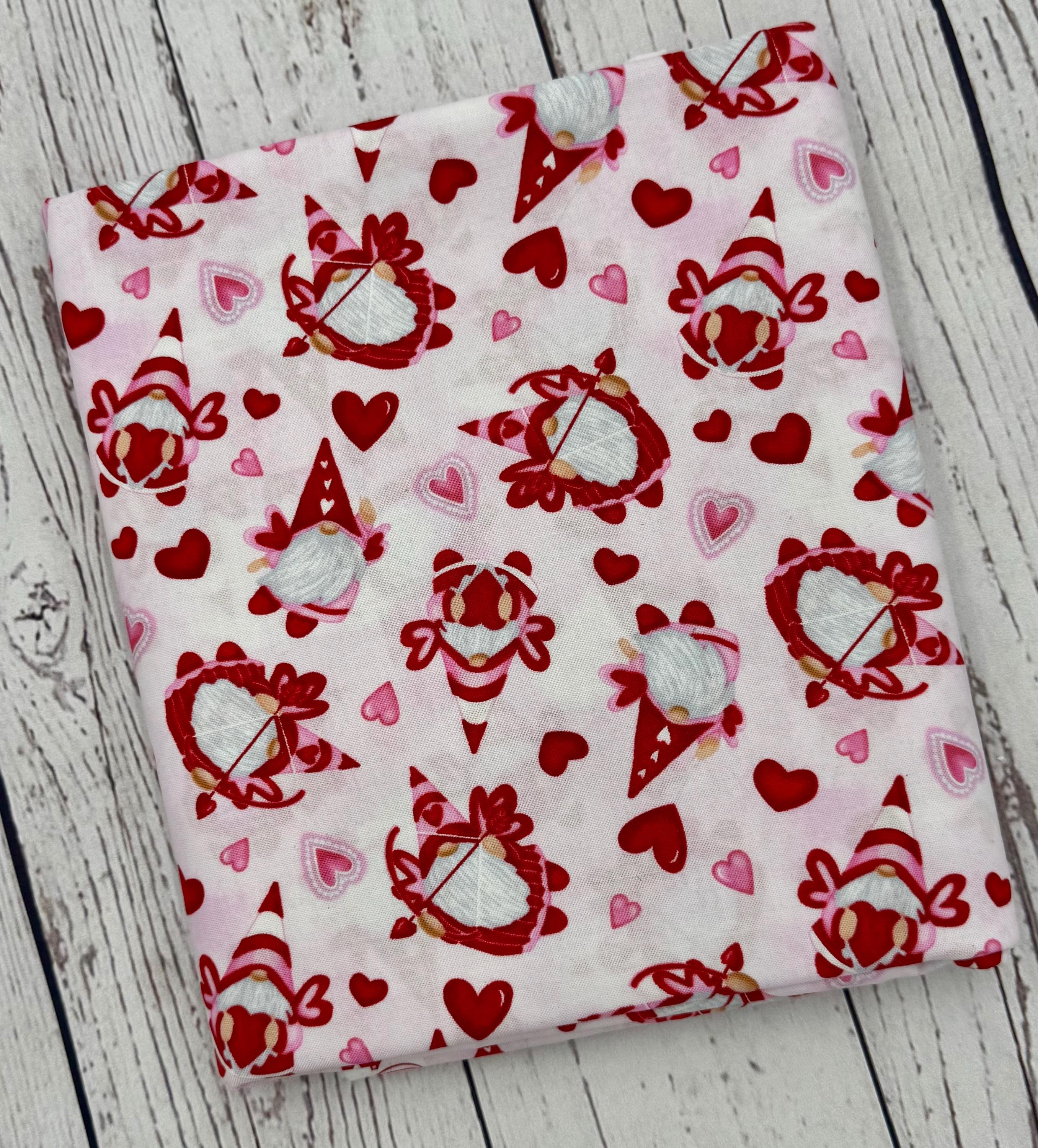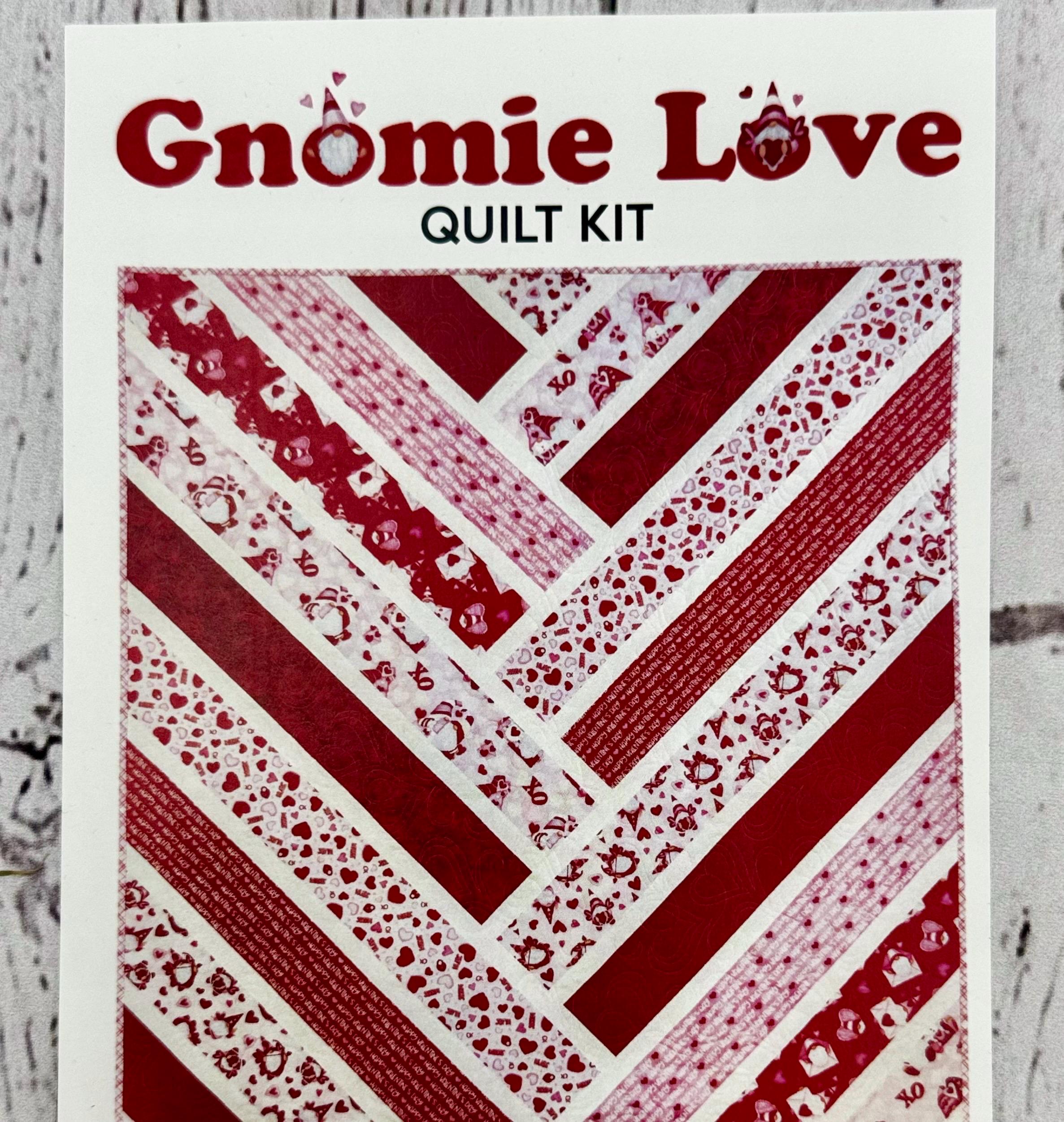All the fabric needed to complete this adorable gnome and hearts quilt. Includes pattern. Finished quilt size 40 X 50