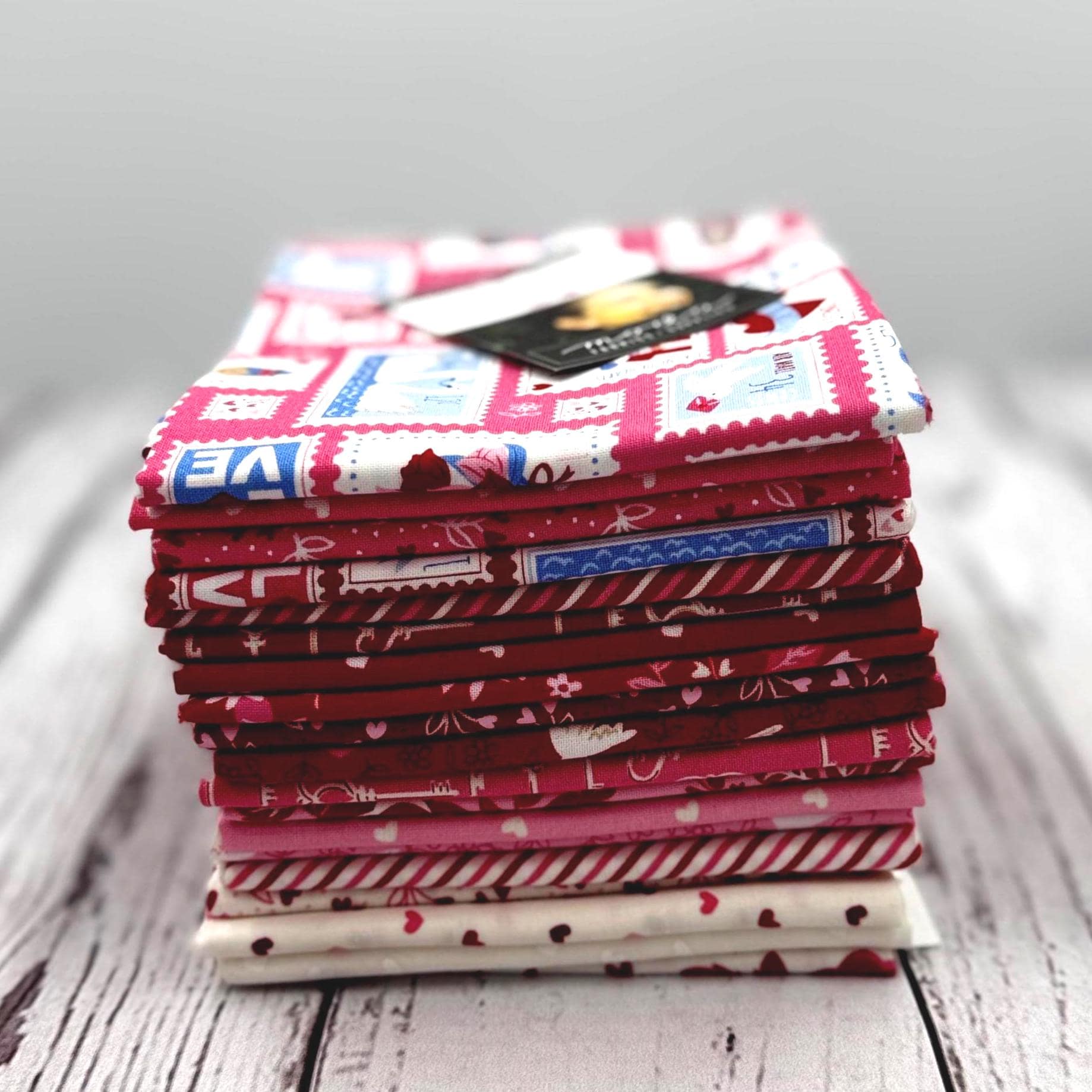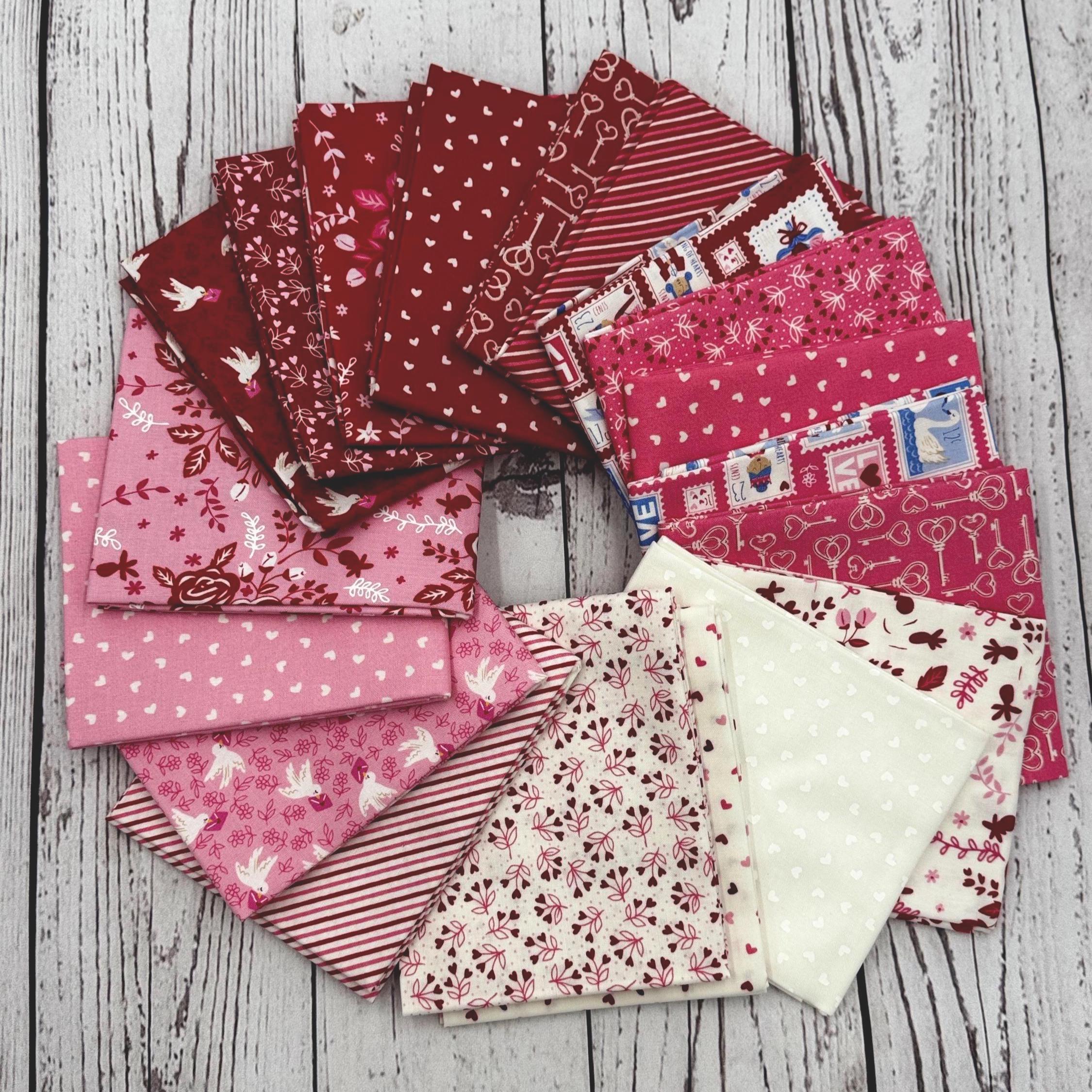 Be Mine by Stacy Iest Hsu for Moda Fat Quarter bundle is manufacturer cut and includes 19 precut 18" x 21" fat quarters. 100% cotton.