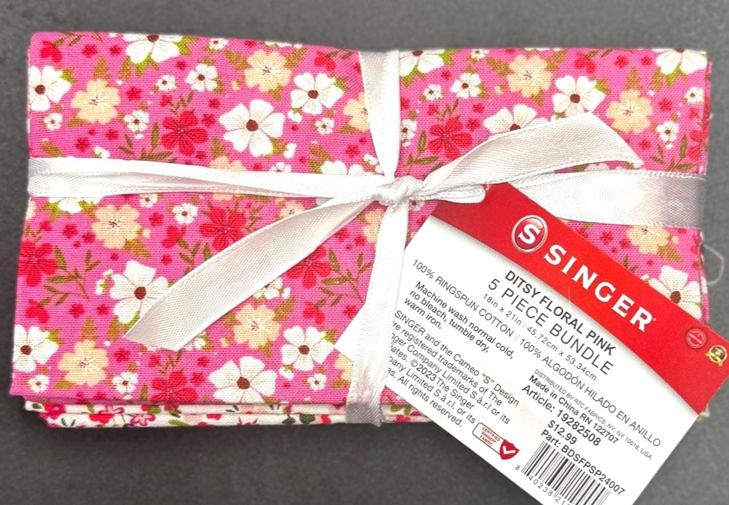 Add a splash of color to your project with our new SINGER® FABRICS 100% Ringspun print cotton fabric. Our SINGER® FABRICS is perfect for quilting, apparel, and more! Perfect for all of your sewing and crafting projects. This SINGER® FABRICS Bundle includes five 18 x 21-inch pieces of 100% Ringspun Cotton fabric. Imported product. Not intended for children's sleepwear. Care: Machine wash gentle cold with like colors, nonchlorine bleach, tumble dry low, warm iron.