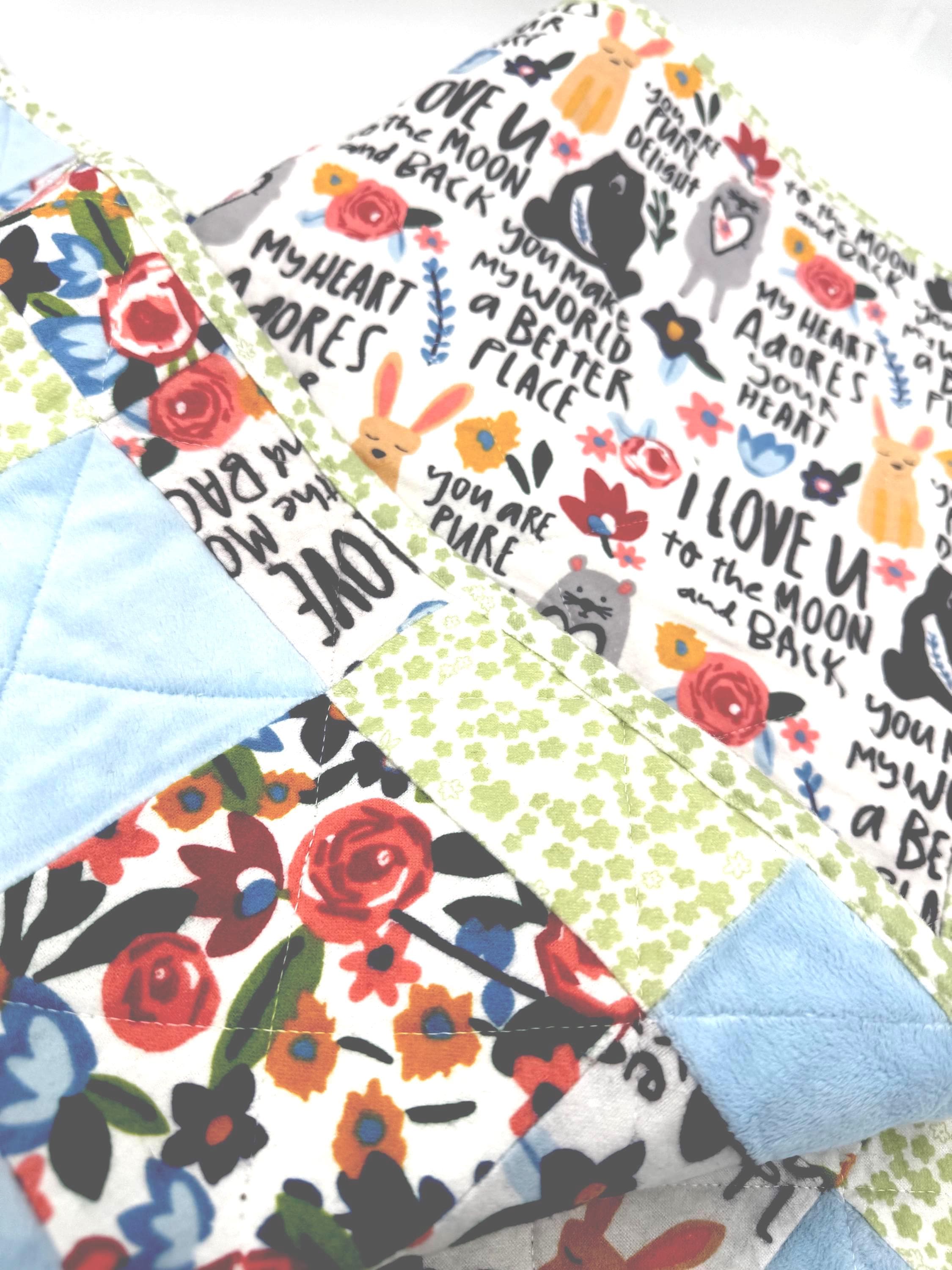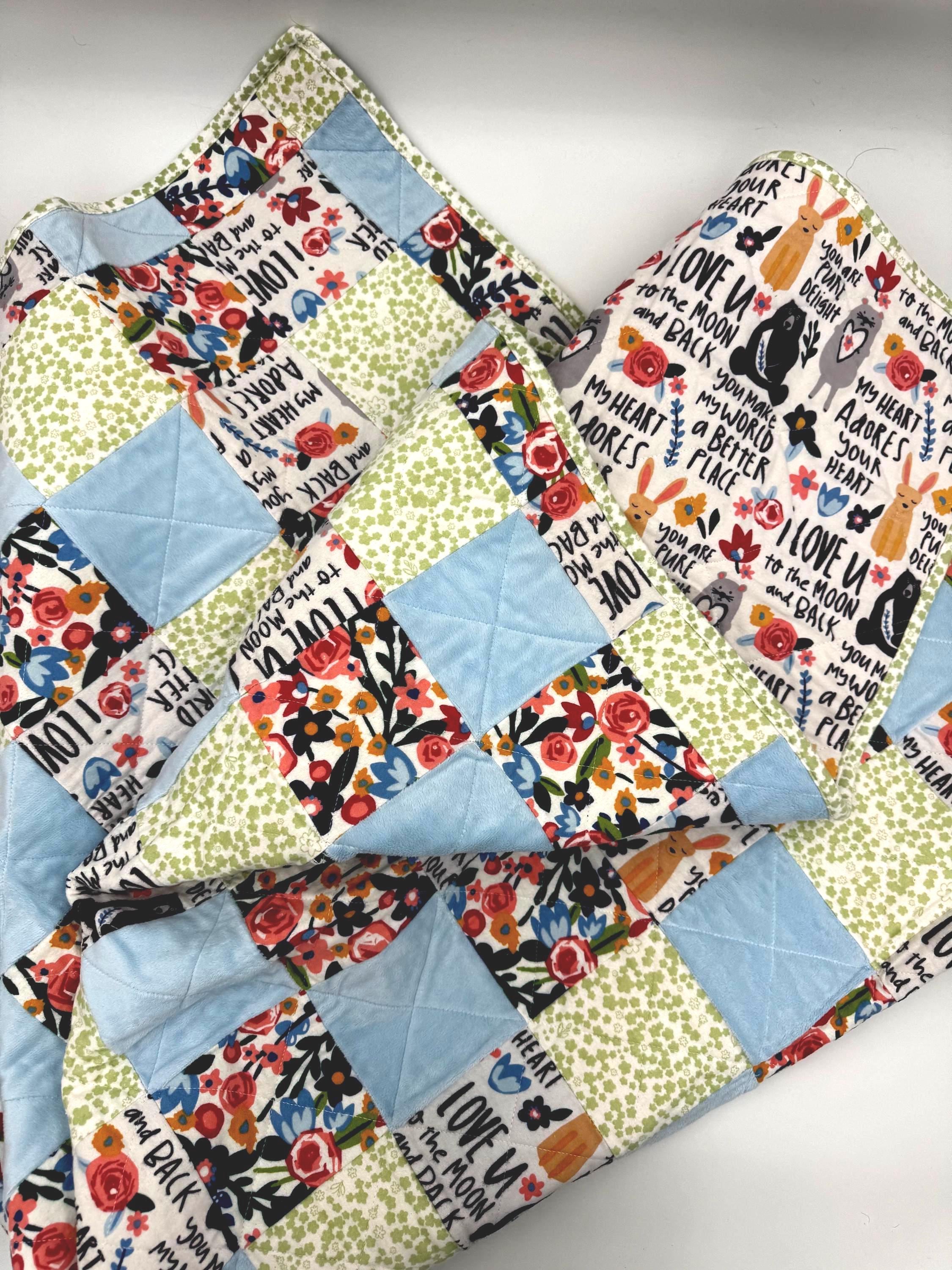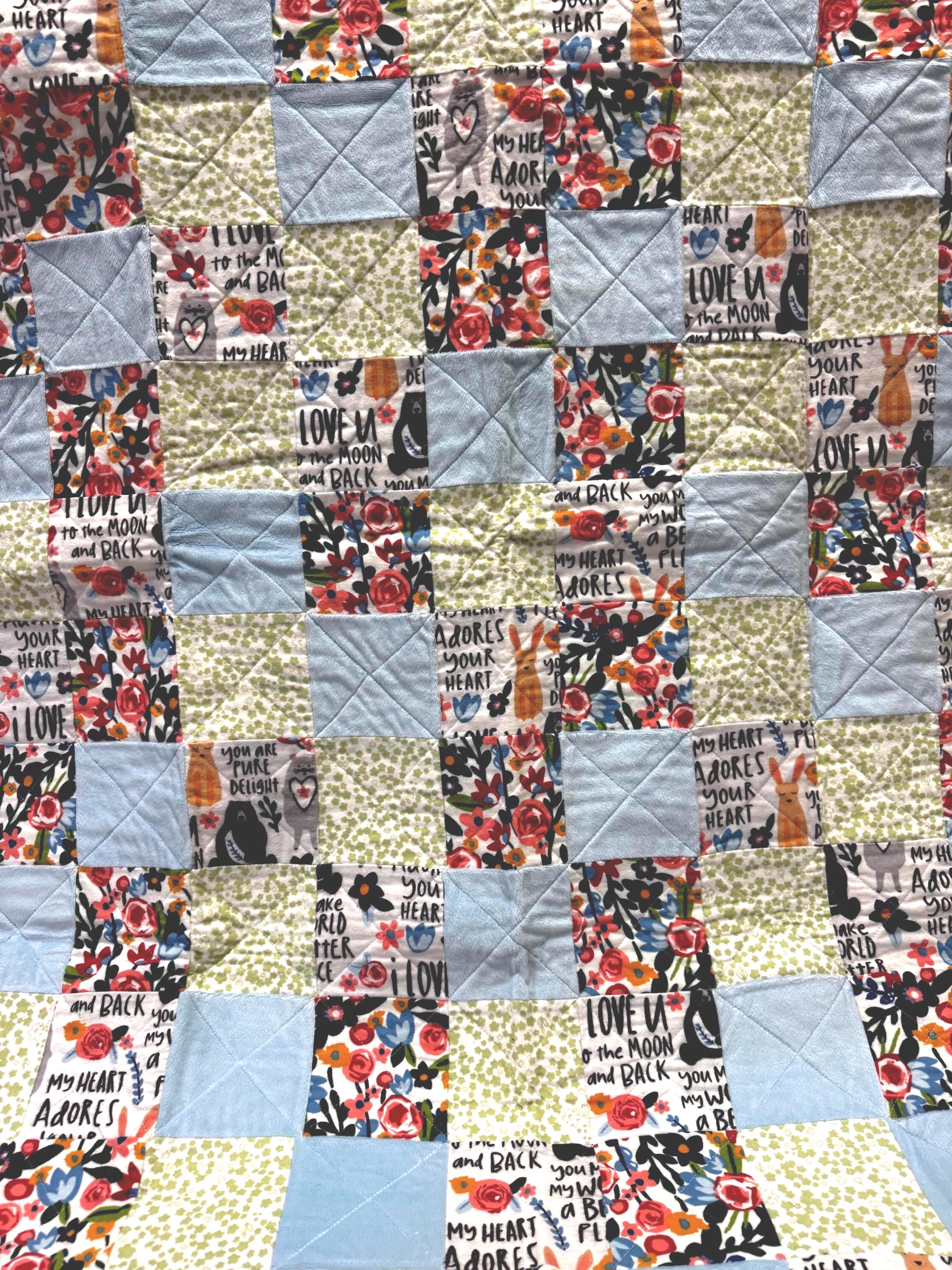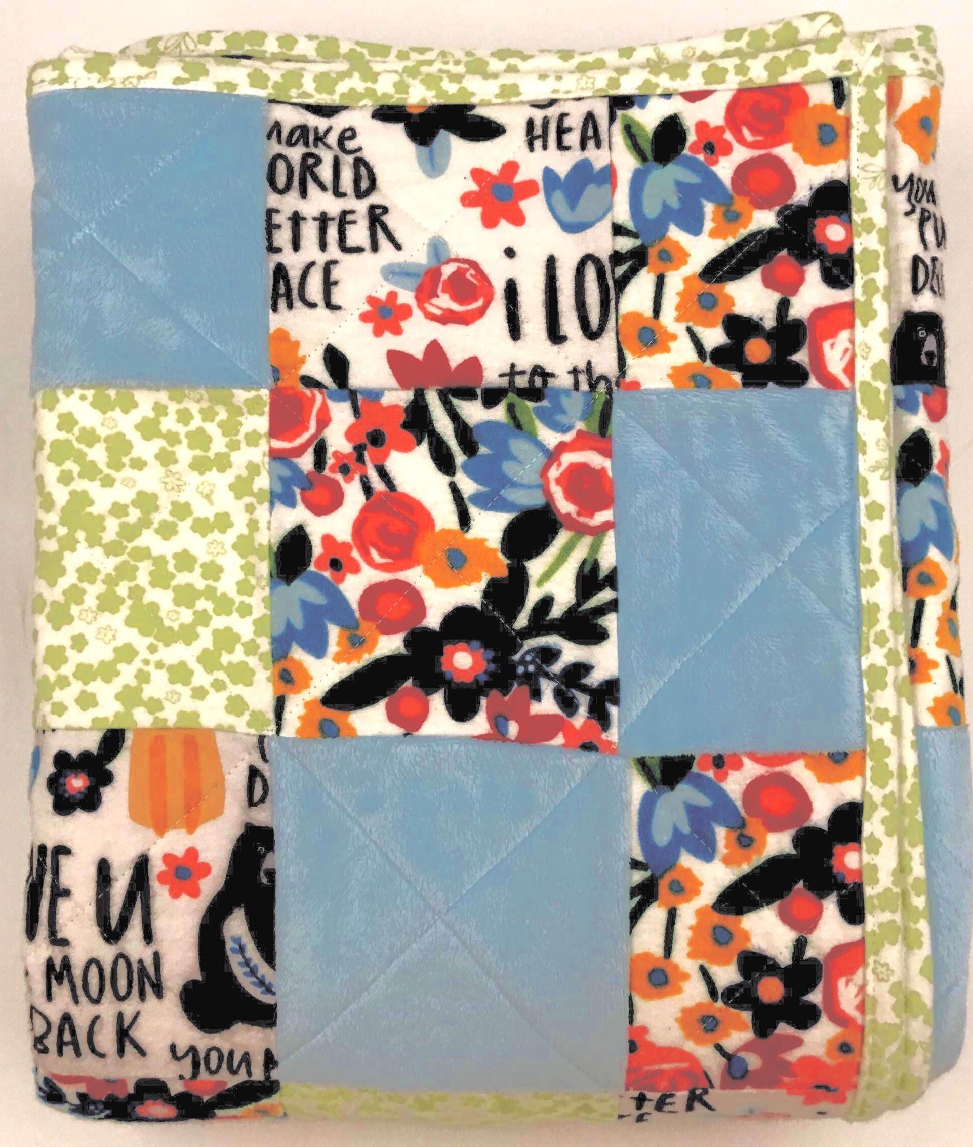 Modern patchwork baby quilt Handmade with pure nana love. Flower Garden Lovey perfect for tummy time.